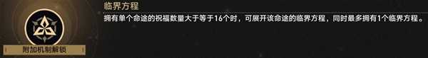【临界方程】看着相当唬人,但实际上你几乎不可能激活得了这玩意 ——16个同一命途祝福,即使是在流程更长的【黄金与机械】中都不一定凑得够,更何况是流程相对比较短的【差分宇宙】。