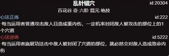 这里加入的核心奇窍是乱针错穴。这玩意的效果是平A打出重内伤时就会点对方一个穴。