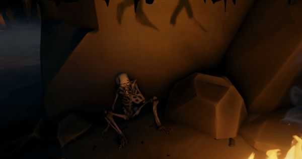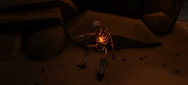 找到骨架,并与伸出的手臂,直到它的手指向照亮整个房间的火堆。