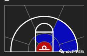 防守方面,依靠于出色身体条件,迈尔斯的横移(90)和反应时间(95)都相当出色,而且抢断(82)和盖帽(88)也在及格线之上。但是他的投射能力比较一般(中投82+三分81),冷区更是比热区还多(如下图),也没有任何的投篮徽章,所以迈尔斯还是要以扣篮作为主要得分手段。