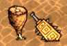 火腿棒:两块生肉,两个树枝,一块猪皮。是游戏中期很受欢迎的武器,肉棒的攻击力会随着新鲜度降低而降低,刚制作的肉棒攻击力59,在新鲜度低于大约70%的时候攻击力低于50。不过相较其他武器肉棒的耐久只限于新鲜度,保质期内可以无限使用,适合短期内的大量战斗(比如刷大量蜘蛛这种低血的生物)