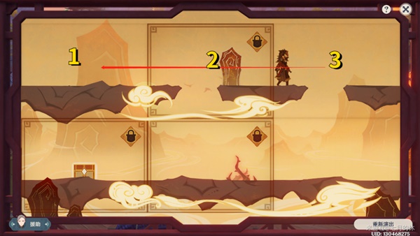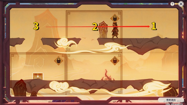 2.再把1号格子拖到3号格子处,进行互换,人物就能从缺口掉下去拿到宝箱了。
