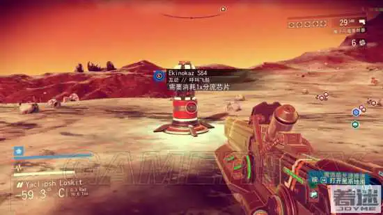 而在藏身所附近,拥有飞船停泊的降落台附近,同样有这么个EkinokazS64设施,就是外观有所不同,同样的得消耗1份“分流碎片”才可以将飞船呼叫到此。