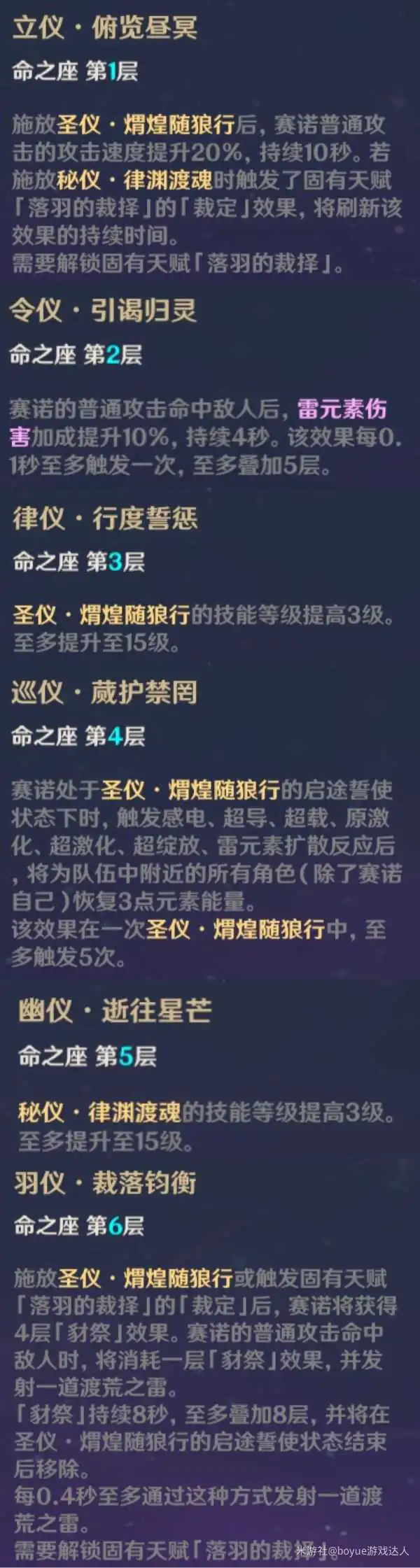 目前赛诺还没有最佳队友,目测草神会是,2命加专武会是他的关键巅峰,0命也能用,尤其是缺主c的玩家,或者想要玩激化队的,赛诺都是目前最佳选择。