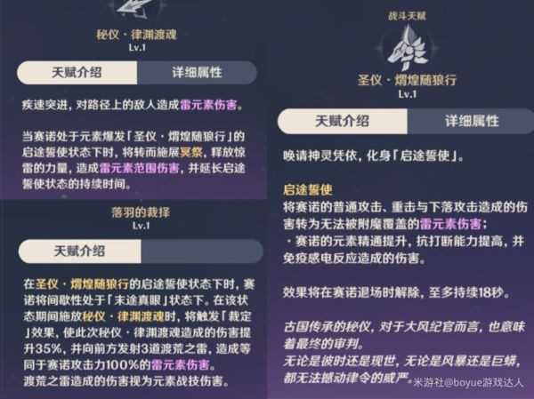 元素精通:从被动天赋来看,赛诺的元素精通是非常重要的属性,激化反应加成不用说,本身还能增加大招时的普攻与技能伤害,属于必堆属性。