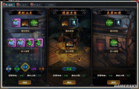 玩家在等级达到40级,可以开启装备副本,玩家可以在单人副本界面中,选择藏剑山庄副本页面。