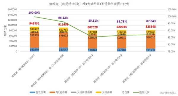 娜维娅这边在之前娜维娅篇攻略的时候也已经说明过了,因为娜维娅的伤害62%以上来自于E技能的霰弹枪。而其他的圣遗物中能加成到这部分的并不多,如果使用2+2的话词条数会非常少,因此唯一能和回声4拜拜手腕的只有猎人4了,但即使是猎人4与回声4的差距还是很明显的。因此回声4可以说是娜维娅的专属圣遗物了。