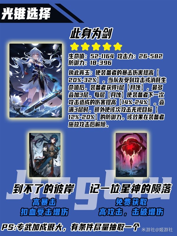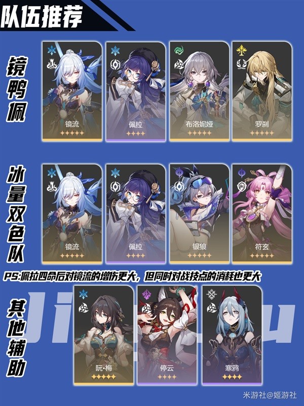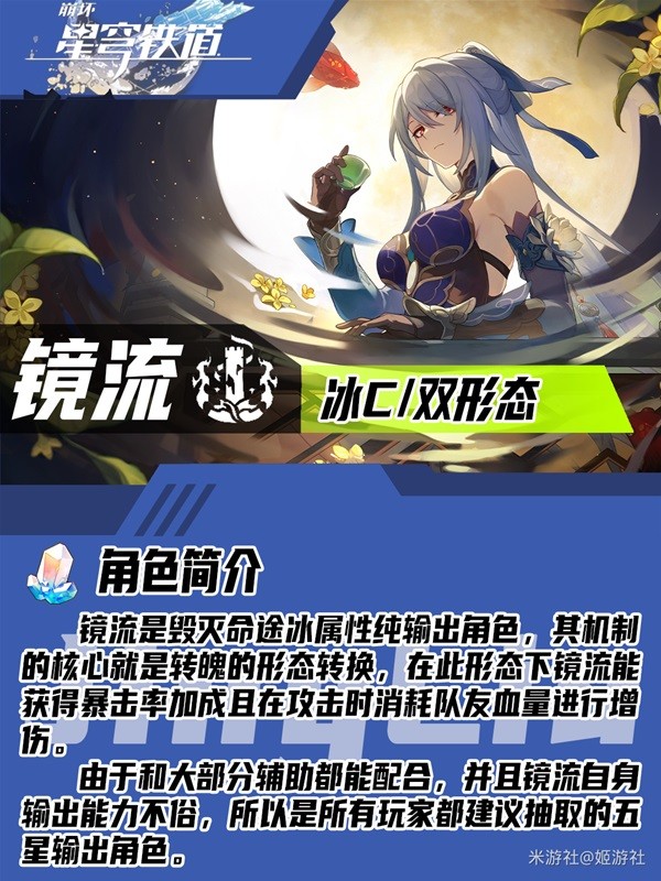 由于和大部分辅助都能配合,并且镜流自身输出能力不俗,所以是所有玩家都建议抽取的五星输出角色。