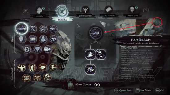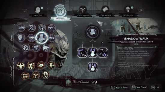 5.切回游戏,进能力菜单(注意不是轮盘),重复进出能力菜单直到你发现所有能力都在菜单显示了,但是现在你还没有激活这些能力,要么用符文买(这么多能力估计能花不少符文),要么进步骤6