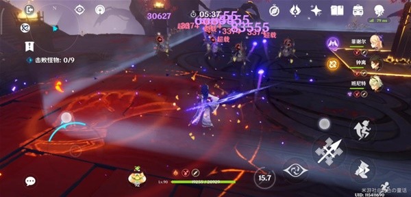 面对群怪时,似乎会因为不止一人沾到了火元素,而出现意料之外的情况:纳西妲先手,我们的火元素触发燃烧;小艾咪登场产生一次范围雷伤,并在后续持续造成雷元素伤害。