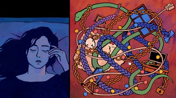 到底是哪里做错了,才会过上如今的生活?这不仅仅是一个《武林外传》佟湘玉掌柜每次会抱怨的话题,它其实也或多或少存在于我们每个人的脑海中,《失眠》的主人公也不例外。她曾经当着老师和全班同学的面撕毁了那个让自己“不太一样”的画作,她曾经在生活中面临着诸多的失去:曾经的儿时好友形同陌路还对她冷言相向;从小养大的爱犬终究面临诀别的那一天;而互相深爱的男友也因为去往外地而与自己分手。