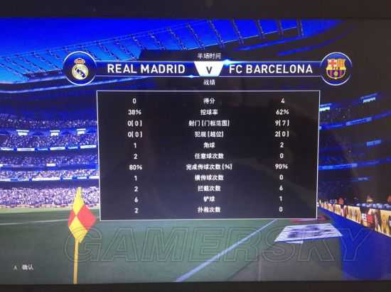 最近我又重新开始用巴萨打大师联赛(最高难度),第一个赛季国家德比基本赢3到4个球,偶尔也可以零封对手。(刚才打了大师联赛用巴萨和皇马在国王杯半决赛碰见了,主场6比3,客场4比0,,客场上半场的技术统计我贴了张图,另外还有32场比赛的联赛积分榜。)