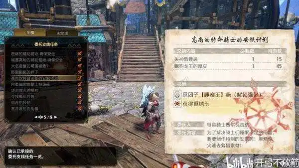 2.武器方面的委托需要达成开启前置关键素材才能顺利开启委托,例如:领取捕获冰鱼龙的委托需要有一条旗鱼以开启鱼骨弓这个武器分支,今天知道的热知识!