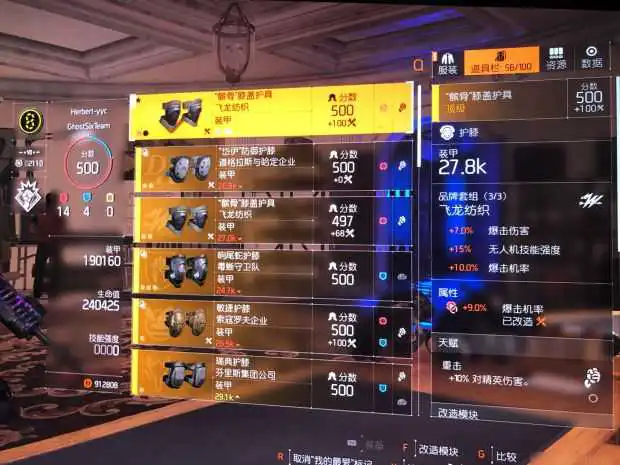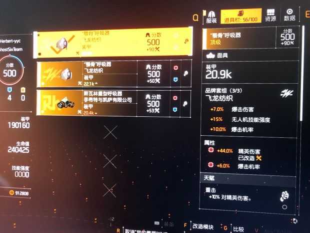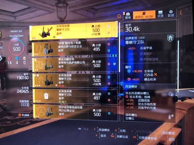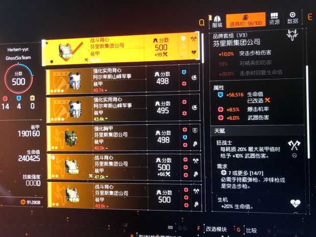 这版本要么用尾棕包加村上手,要么肩胛包加攀爬手,前者精英伤偏多,后者武器伤偏多,看个人选择。这是尾棕包加村上手,87精英伤,根据个人词条不同数据有差异。这是肩胛包加攀爬手数据,77精英伤,根据个人词条不同数据有差异。