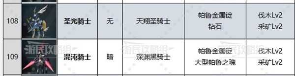 2级:趴趴鲶、猫蝠怪、森猛犸、雪猛犸、天羽龙、圣光骑士、混沌骑士