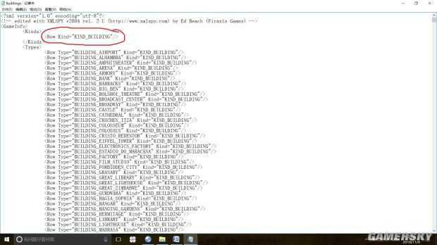 让我们继续,接下来是Buildings(建筑物)文件的修改教程,打开来首先看到是这个样子的:
