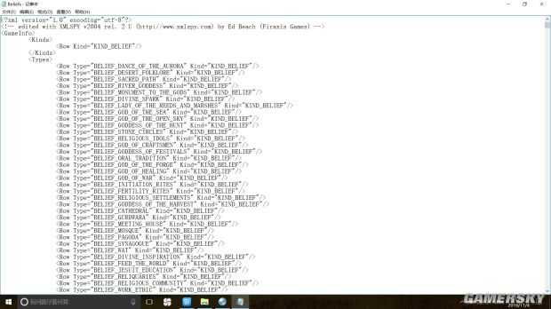 为了方便这个教程的整理,我会按照首字母顺序进行重点解说,第一个来看Beliefs(信条)文件,用记事本打开可以看到是这个样子: