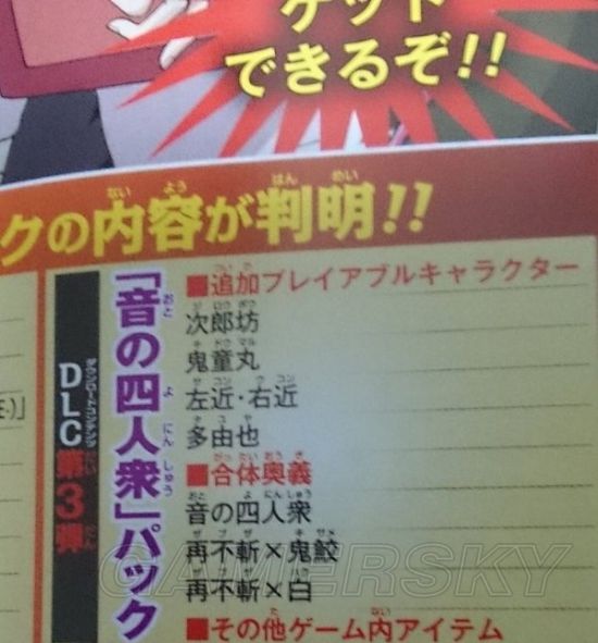 追加可用角色“次郎坊”“鬼道丸”“左近 右近”“多由也”、合体秘奥义“音之四人众”“再不斩・鬼鲛”“再不斩・白”