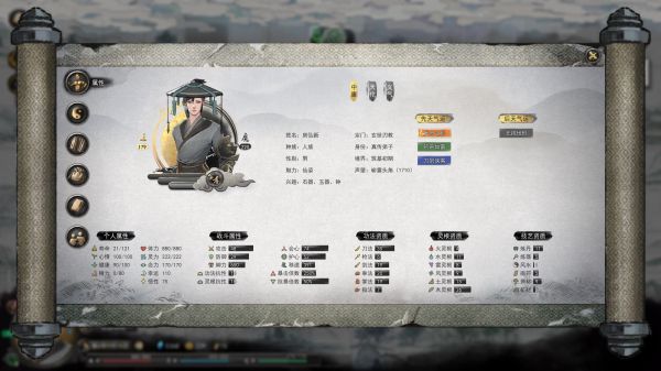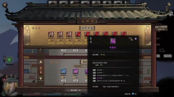 像是灵根抗性是为了我们之后解任务打怪要站着打用的,抗怪物属性,毕竟玩刀修就想贴着打(这边楼阁最好只有血量的,我买紫色加血量心法,图没拍到)