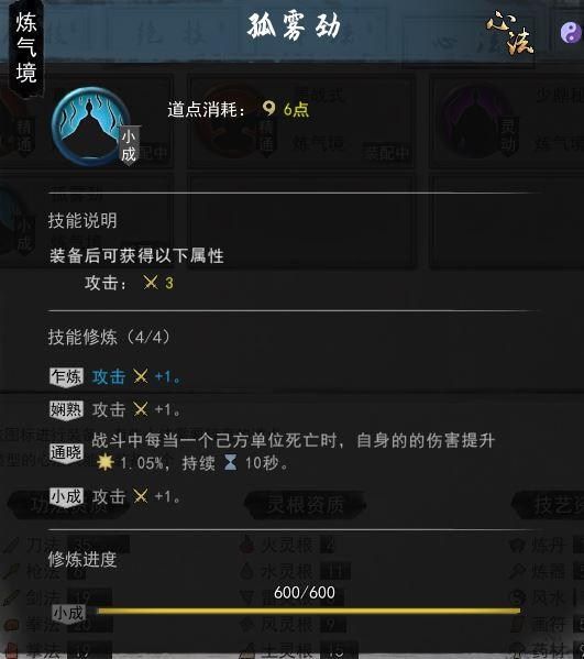 4.1.1提升心法技能到满