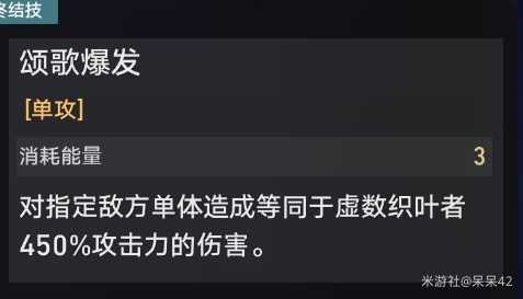 毕竟从数值上来看,【虚数织叶者】终结技似乎不比战技强多少,锁住也就锁住了