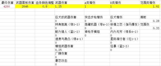 可以看到如果计算出模组和属性上最常用的范围伤和溅射伤害,唯一额外收到模组25%武器伤的爆头的伤害为4260,而残酷大人物的最终伤害为4091。