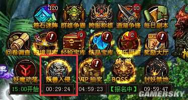 一开始错过活动开启,在活动时间内可在主界面上方有图标光圈显示,“妖兽入侵”图标可进入活动。