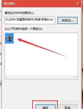 3、在弹出的更改图标框,可以看到保存图标的路径,下面是相应的图标,选择其中一个图标,按“确定”
