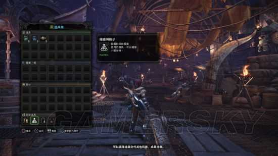砥石无限,妈妈终于不用担心我的斩味掉得太快了,双刀也终于可以舒服开荒了。背包里还有几个固定道具,钓鱼和烤肉都好理解,这个网貌似是用来捉一些可以在小屋里展示的宠物: