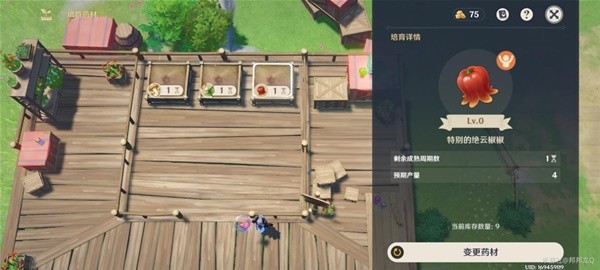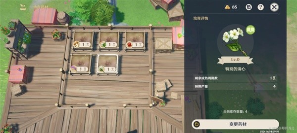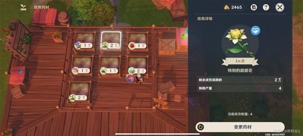 再去药材培育处收获种植(生长为俩周期的而且已经生长一周期发芽的就不要更改了)。