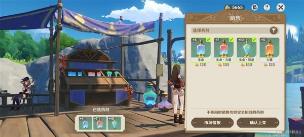 再去炼制关于市场情报的药剂,但是同名字的药剂只能放一个在货架上,所以可以选择生命和力量,一个药剂包含俩个功效。
