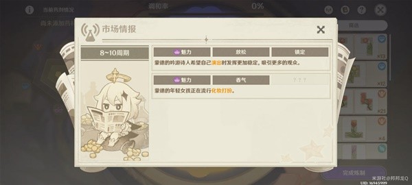 c)每个市场情报可能会对应3个以上的功效和特征词条,但最多只会显示3个。如果当期售卖的药剂有更合适的词条,会替代已经出现的提示