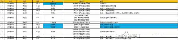 时间每3小时为一阶段,比如12:00,可以是12:00-15:00里面的时间。NPC蓝色背景表示初始可以建立(需两人登录羁绊图),红色名字表示这时候该NPC有任务,对话登录羁绊谱但不要接任务,建立关系再接取。