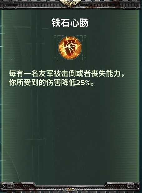 下一个技能选择铁石心肠,高难度情况下一个不慎就会躺地上,这时候就需要欧格林来救场,同时欧格林需要承受住救人时候的伤害,所以要进一步提升伤害抗性