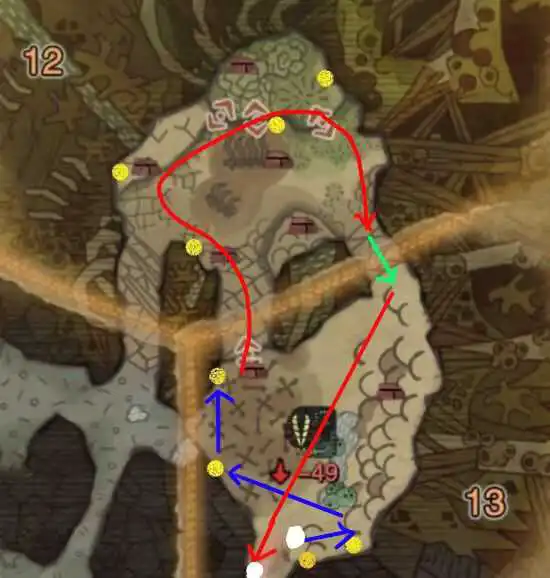 跳下来后直接冲刺往前,到达白点开始。下面的区因为有采集点都在墙面和墙比较平整,可以直接长枪冲刺绕场一周。绕完一圈再原路返回,沿着来时的斜坡冲刺上去,再钩两个楔虫到跳下来前的斜坡。一路长枪冲刺到珊瑚台地开始时的白点开始新一个轮回。