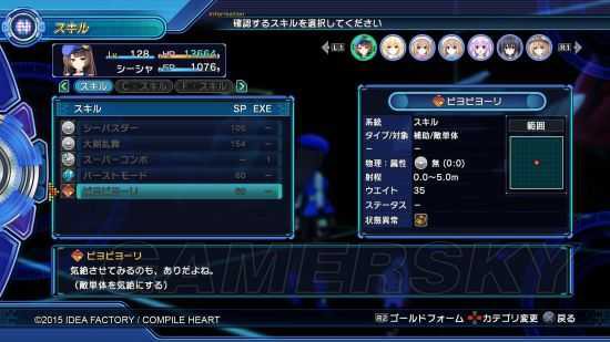 因此我们要在它行动之前,让它陷入气绝,或者麻痹状态。备选技能如下面两个图。我方能够使用这两种的异常状态的人物实在是少的可以,只有C社,Rom以及Uni。但是Uni的异常状态技能是物理系攻击,多半一击就把史莱姆给秒了,所以不能用。而Rom的麻痹攻击则是纯属性攻击,对金属史莱姆伤害为0,但是一样会附带异常状态。但是要注意的是,异常状态的附加概率不是100%。