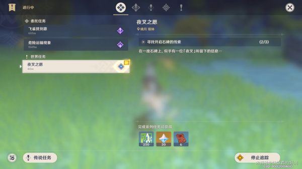 首先来到这个位置,找到这个石碑,然后就会触发世界任务,夜叉之愿。