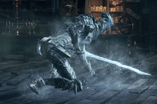 再然后是把N多人打的叫爸爸的大剑教堂骑士,起初我以为这货是双持巨剑是不能弹的,不过事实证明,怪是和玩家不一样的。