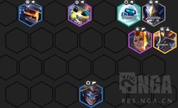 3奥就不多说了,金克斯和石头人是2奥,7人口随便拖个挂件进来用。7人口理想的奥斗枪已经可以稳血,甚至连胜。