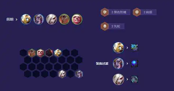 过渡到7人口,4-1搜两星蛇女、机器。机器数量多就一起追,不然就两星蒙多/盖伦/蜘蛛当主坦。蛇女三星后上人口开高黑色玫瑰。