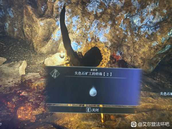 3级失色石矿工铃珠(交予商人可无限购买5-6级)地点:玛莉卡第一教堂外尸体。