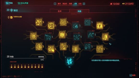下面说一下加点。下面是我的加点。12肉体18反应18技术20镇定是目前我认为最大众化的点法。还有一种点法是10肉体18反应20技术20镇定。后者这种点法可以制作属性更强的觉,缺点是突触信号只能带绿色,没有天下无敌的加持和12级肉体熟练度5%的生命值加成。比前者少了30%的血。但考虑时停刀剑不需要堆血,后者这种点法推荐给对自己操作有自信的玩家。至于为什么不点20反应是因为,龙斩仍有BUG,点了跟不点没啥两样有些时候甚至会降低你的伤害。这里主要说一下我的加点,这套满熟练度有整整120点的专场点,不多不少正好120.不加BUFF的情况下有683滴血。