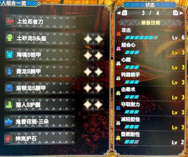《怪物猎人崛起》上位忍者刀有极长的绿斩,还有100%的会心率,不过也需要有针对性的配装才能够发挥出这把片手的实力,下面请看玩家“lv”分享的《怪物猎人崛起》2.0版忍者刀配装分享,希望能为各位玩家带来一些帮助。
