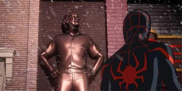 我们知道:在《漫威蜘蛛侠》中,彼得和玛莉珍约会的餐厅 Mick's Diner 的持有者和大厨正是由斯坦·李配音和建模而成的人物。目前,斯坦·李已经离我们而去,如果玩家(操作迈尔斯)回到餐厅附近,就能看到斯坦·李的巨大雕像,另外提醒大伙:如果靠近雕像与之互动还能解锁奖杯!