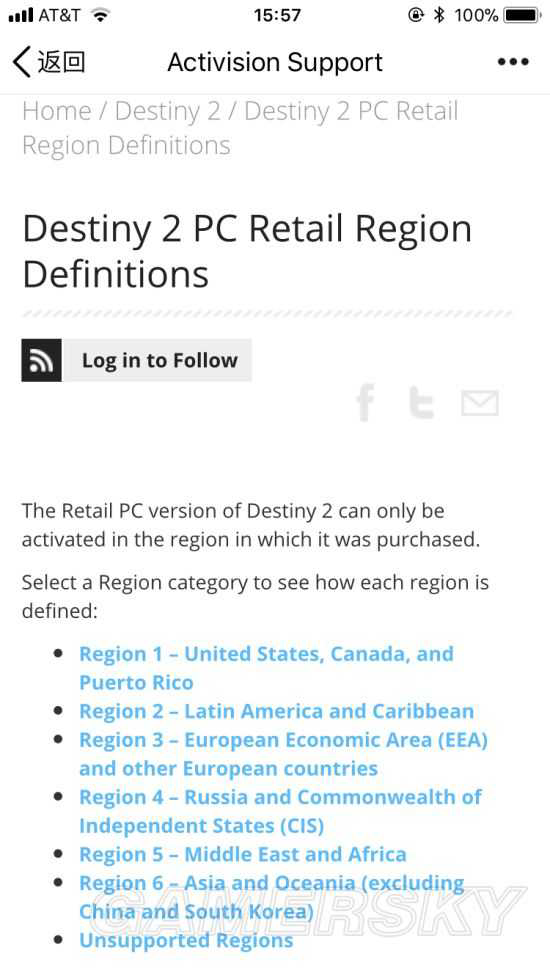 A:Destiny 2零售版分六个购买区(图1),在一个区域内购买的零售版只能在该区域内激活。但是!!玩家自己在Battle net上购买的直销版则可以在全球激活,或者说购买时已经自动激活。