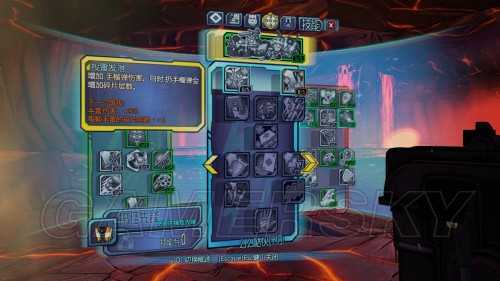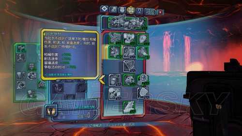 技能直接按从左到右的顺序编号并且字体颜色会和技能树边框颜色相符。PS:此打发最适合散弹枪。推荐使用开枪次数少的J厂散弹枪和开枪次数少的托格散弹枪,配合第一页及技能树打出瞬间爆炸的伤害。