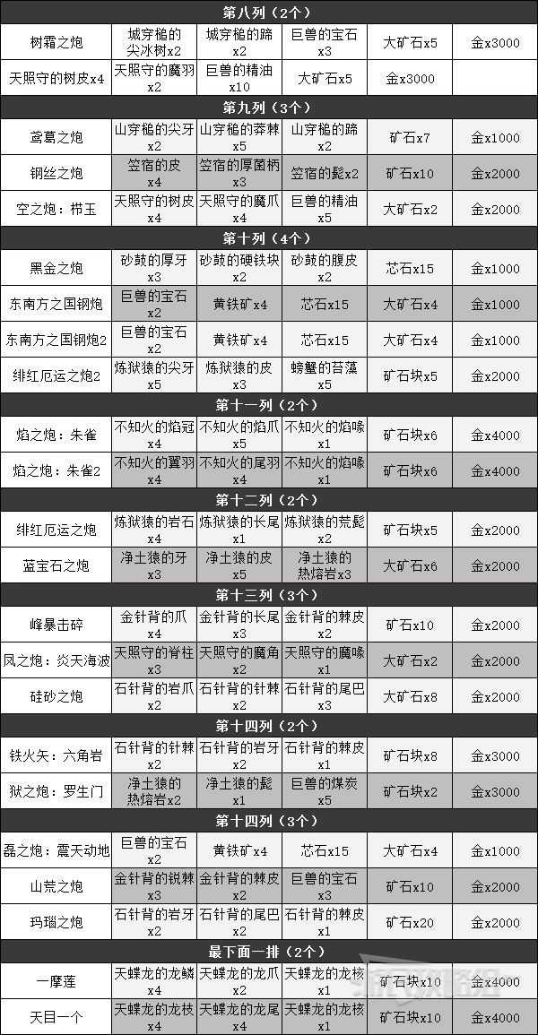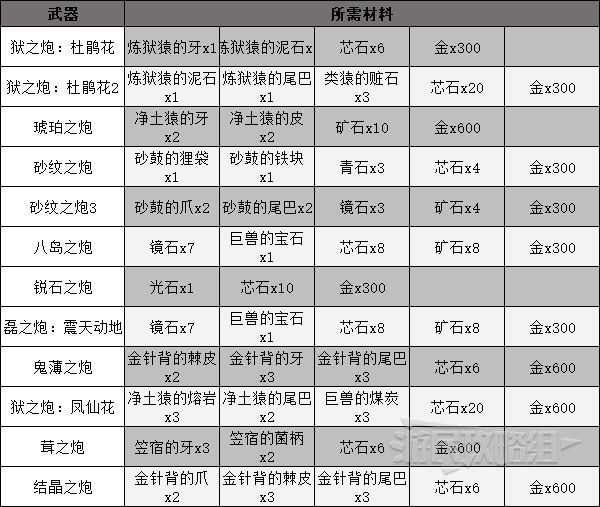 不同种类武器的解锁材料都是一样的,下面以大炮为例: