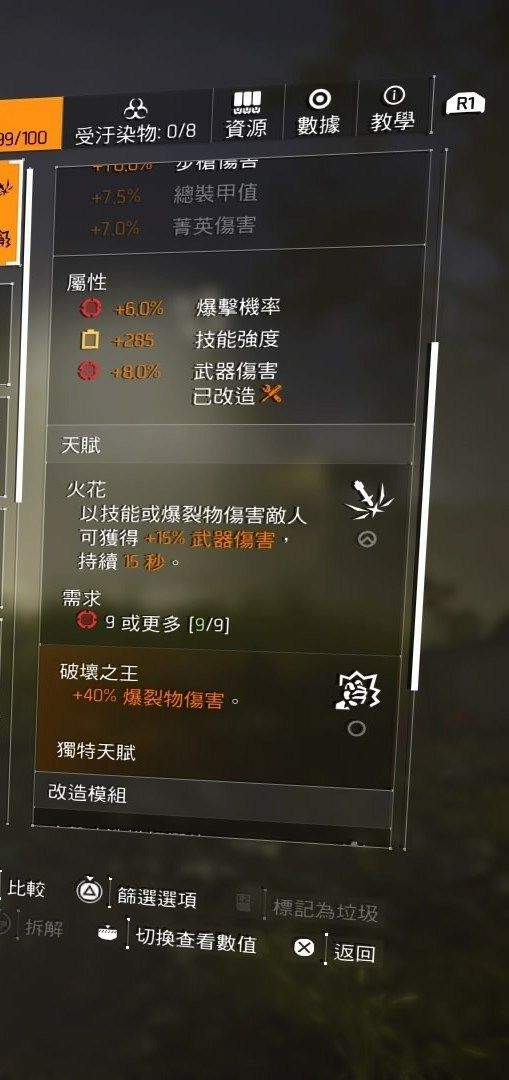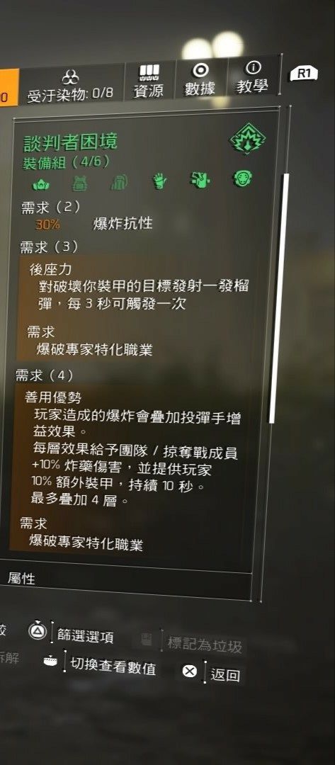 从绿色套装开始清理仓库,看到谈判只要四件套。又刚好注意到新背包天赋火花也跟爆破有关,于是就开始实验谈判者硬洗成9火会是怎样的状态,这是第一版,纯粹是想一起救炸弹客这天赋。