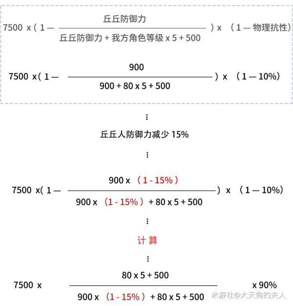 然后,把 7 500 和 900 代入我们原神的减伤公式,我们原神的减伤公式是:
