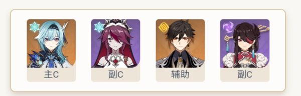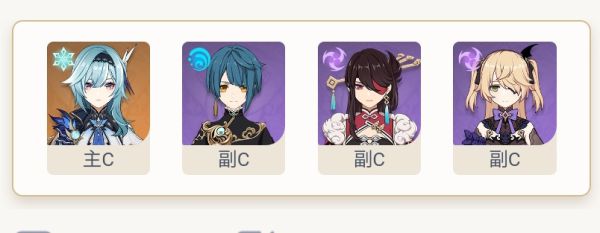 双冰双雷组合,尽量别去考虑双冰的爆率加成,北斗奥兹两个副c互相充能,超导不停,猫猫提供奶、盾和充能。